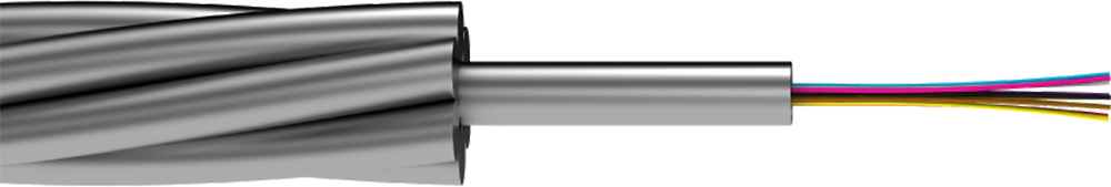 InSky MASS (Metallic Aerial Self-Supporting) design is similar to OPGW design with a lower cost. It can have up to 48 fibers and its maximum rated design tension can reach up to 67,433 lb. MASS is used on medium and high voltage power lines when it is not possible to use OPGW and ADSS or it is not economically feasible. This cable is not designed to transmit electricity. Relatively small size and weight allows minimizing the load on the towers, and at the same time the necessary sag requirements are met. It is possible to suspend MASS, both in the inter-phase space, and below the phase conductors, in some cases without disconnecting the overhead line. It is suitable for large spans between towers, for installation over rivers and ravines.