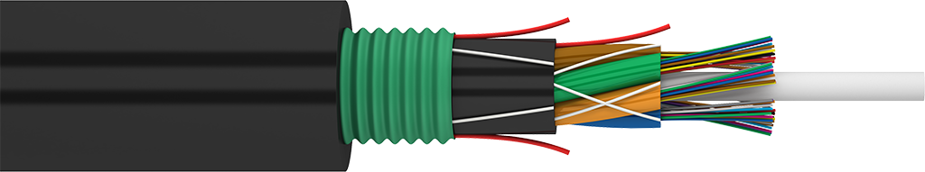 An indoor/outdoor direct buried cable is deployed when rodent protection is a serious concern or when additional crush resistance is needed due to rocky soil.